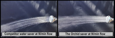 Our saver restricts water flow but at the same time infuses air into the water giving you a good shower experience as well. Our device increases the volume of the water with the added air, so a 9 litre per minute shower feels more like a 15 litre per minute shower.
